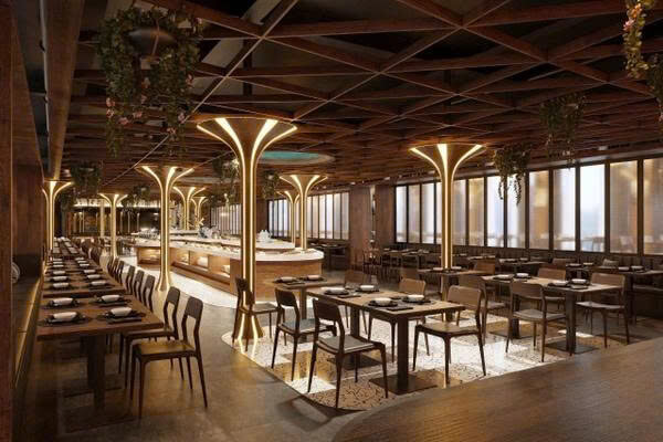 Thực đơn được chuẩn bị công phu bởi đội ngũ đầu bếp giàu kinh nghiệm, kết hợp tinh hoa ẩm thực Á – Âu: hải sản tươi sống, tôm hùm nướng phô mai, salad tôm bưởi, thịt nướng BBQ, cùng nhiều món ăn hấp dẫn khác.